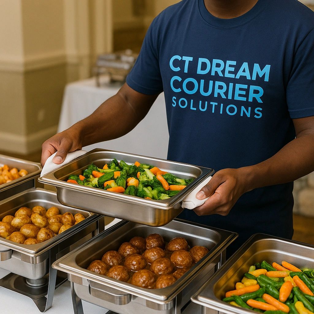 Restaurants, caterers, and event planners trust CT Dream Courier Solutions for safe, on-time food delivery that keeps meals fresh and events running smoothly. From corporate lunches to weddings, bakery orders, and catering trays, we deliver with care so you can focus on your guests.